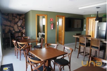 - Sala/ cozinhacom pia, armários, geladeira, fogão elétrico e microondas