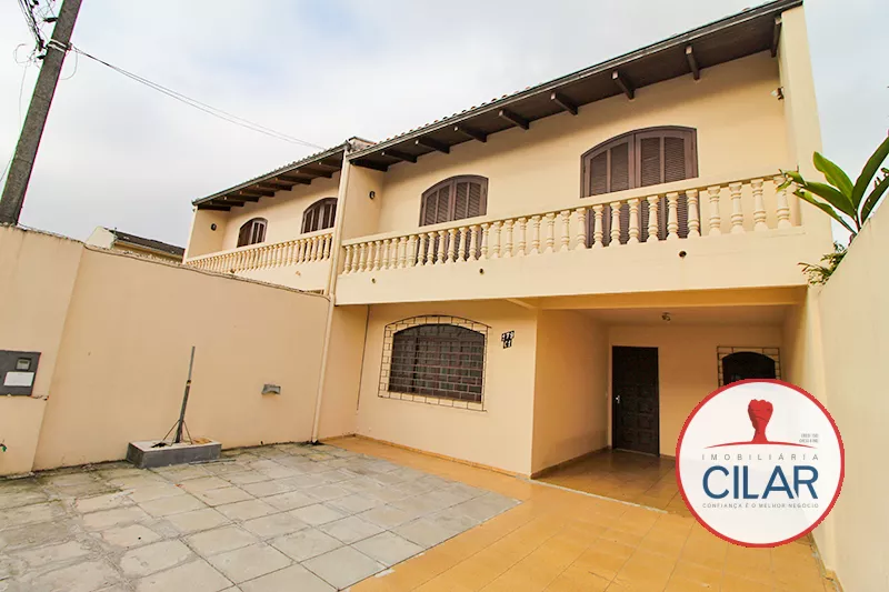 Sobrado de 3 quartos (1 suíte), sala para 2 ambientes, lavabo, banheiro social, cozinha com pia, área de serviço, estacionamento com grades e piso em lajotas e garagem para 3 carros.