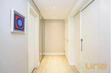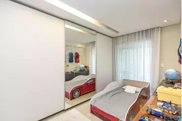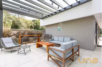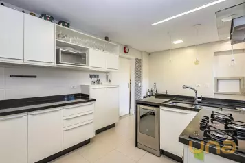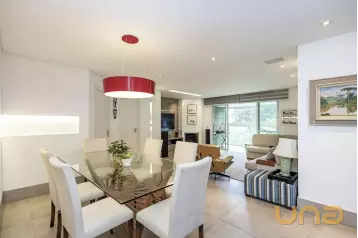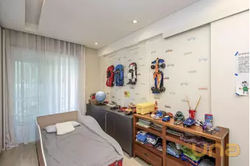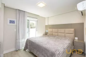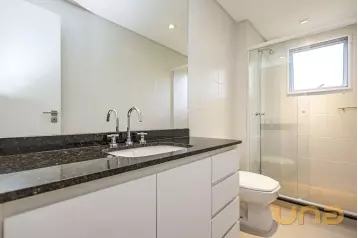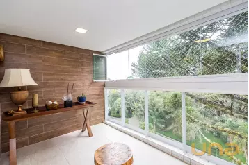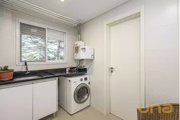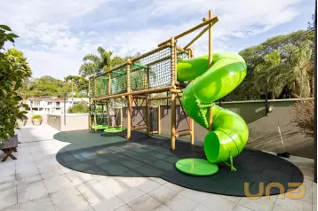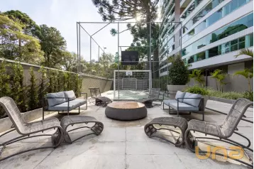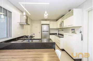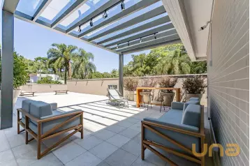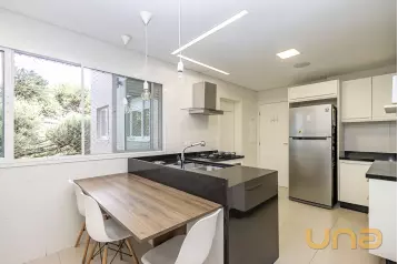 Piso superior conta com uma sala íntima, lavabo e escritório. Além de espaço externo com cobertura de vidro com churrasqueira, pia e espaço de convivência. Tudo isso com uma ótima incidência de sol e uma bela vista do Ecoville!