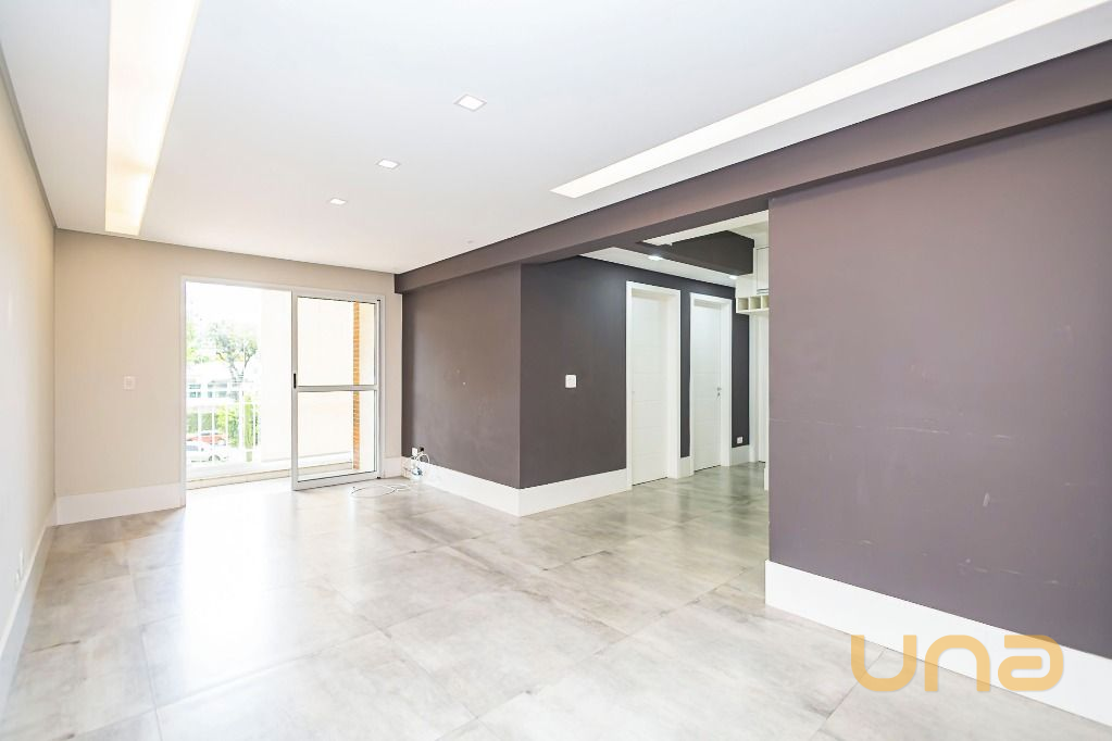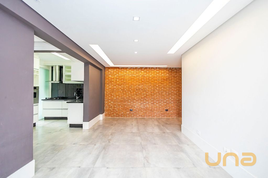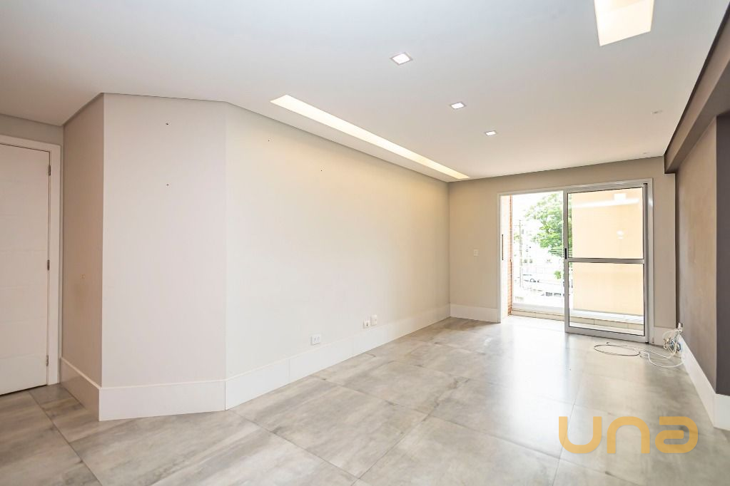 Apartamento com design moderno no coração do bairro Portão, ao lado da Rua João Bettega, no segundo andar, com sala para dois ambientes e sacada com churrasqueira, criando um espaço perfeito.